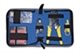 SET ATTREZZI IN ASTUCCIO CON PINZA PER CONNETTORI 4, 6, 8 POLI, SPELAFILI, TESTER, CASSETTINA CON PLUG 6 E 8 POLI, INSERITORE KEYSTONE E TESTER CAVI DI RETE