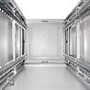 Porta frontale con vetro di sicurezza in struttura di acciaio con chiusura a chiave, porta posteriore con chiusura a chiave.