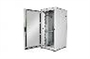 Porta frontale con vetro di sicurezza in struttura di acciaio con chiusura a chiave, porta posteriore con chiusura a chiave.