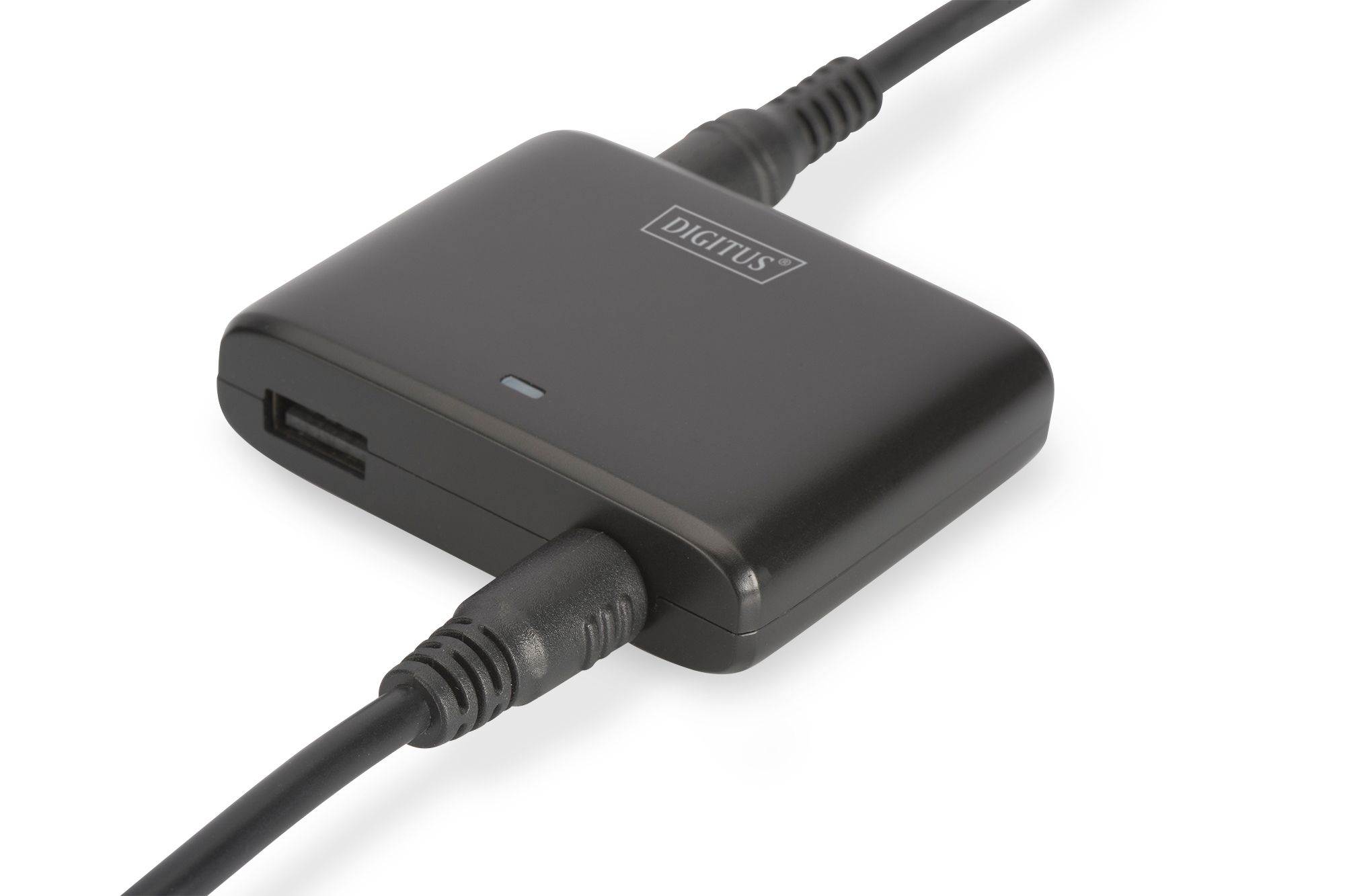 L’alimentatore di rete ultra compatto universale per la caricare i notebook in macchina DIGITUS è un perfetto alimentatore supplementare per la vita quotidiana, i viaggi o in giro. Il dispositivo di carica velocemente attraverso l’accendisigari presente nel veicolo. Fornisce 11 adattatori di ricarica per quasi tutti i notebook delle marche più conosciute come Acer, Asus, Samsung, Sony, HP, Toshiba, Lenovo, Fujitsu, IBM, Compaq, NEC, ecc. La tensione di uscita richiesta è controllata automaticamente dal caricabatterie corrispondente selezionato. Dispone inoltre di una presa supplementare per ricaricare i dispositivi mobili come smartphone, tablet, fotocamere, ecc. I notebook e l’alimentatore di rete sono protetti dai cortocircuiti, il surriscaldamento, la sovratensione e la sovracorrente.