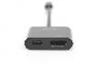 L'adattatore grafico USB HDMI Type-C. 4K consente il collegamento di TV, monitor o proiettore a un dispositivo USB-C.. La massima risoluzione possibile qui: UHD (4K/60Hz). Inoltre, ha un'altra porta USB-C. con funzionalità Power Delivery (PD) 2.0, che ti dà la possibilità di continuare ad alimentare il tuo dispositivo mobile. Ê adatto a tutti i sistemi operativi: Windows, Mac, Google Chrome. L'adattatore fa parte dell'accessorio indispensabile, sia in privato, quando si collegano i propri notebook a un televisore, o in modo professionale in presentazioni tramite un proiettore HDMI.