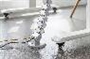 Una base plastica nel peso metallico fissa il passacavi al pavimento, in modo che la serpentina angolare sia posizionata in modo ordinato e controllato senza aggrovigliarsi e creare intrecci di cavi.