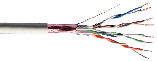 Il cavo solido (unifilare) è adatto per essere usato quando si installano cavi a muro, in canaline, prese a muro, pannelli patch. Cavo unifilare schermato AWG 24/1 F/UTP CAT. 5E 100 MHZ classe D per applicazioni ethernet gigabit 10/100/1000.