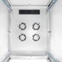 Porta frontale in vetro di sicurezza in struttura di acciaio con chiusura a chiave con serratura a maniglia. La porta è reversibile, in modo da poter avere l'apertura a destra o a sinistra a seconda della convenienza.
