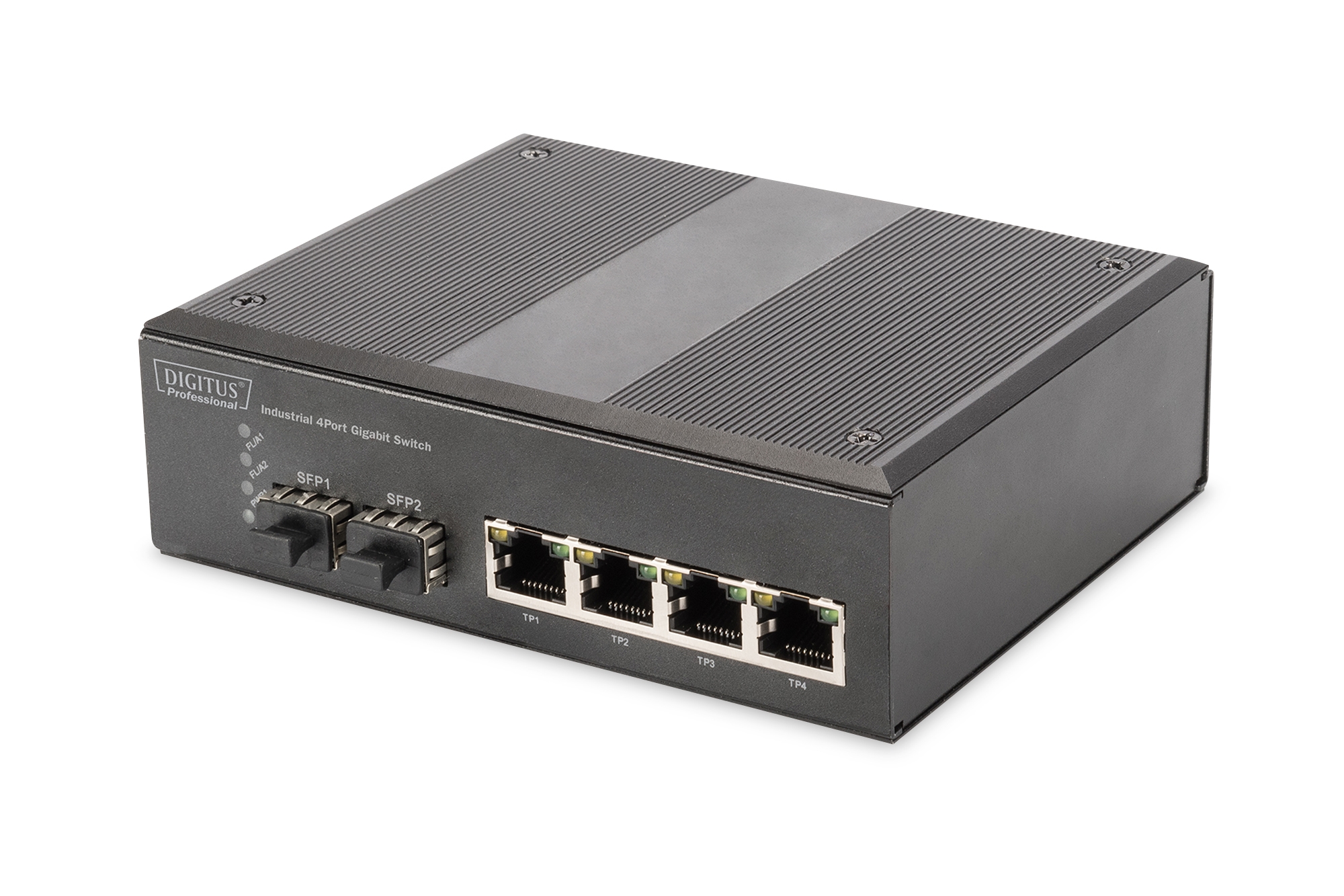 Switch Ethernet Gigabit DIGITUS di grado industriale, 4 porte10/100/1000Base-TX Ethernet, 2 x SFP, -40°C ~ 85°C