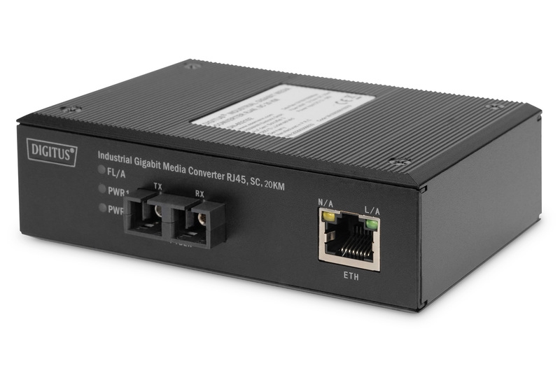Industrial Gigabit Ethernet Media Converter, SM SC connector, 1310nm, up to 20km