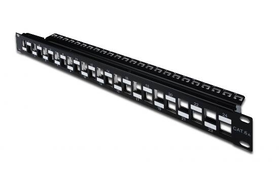 I pannelli modulari graduati a 24 porte della DIGITUS® sono ideali per l'installazione in armadi da 483 mm (19") grazie all'acciaio al carbonio laminato a freddo spesso 1,5 mm. Attraverso la disposizione disallineata del modulo Keystone, si crea uno smorzamento migliore tra i canali di trasmissione adiacenti. Sono disponibili nei colori grigio (RAL 7035) e nero (RAL 9005).