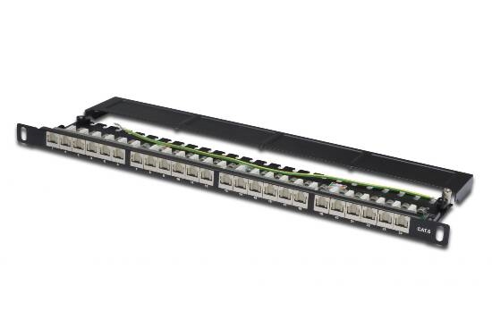 DIGITUS CAT 6 pannelli patch, schermato, 24 porte RJ45, con schermo, 8P8C, LSA, 0.5HE, installazione 19", Colore grigio RAL7035