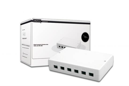 Digitus DN-93705 Scatola in plastica a 6 porte. Per inserire jack 8 poli di rete. Ingresso cavi da due lati, laterale e posteriore. Con viti per fissaggio a muro. Misure 17 x 11x 4 cm.