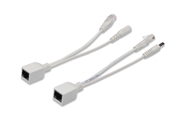 Kit di cavi Power Over Ethernet. Il kit e' formato da un cavo splitter trasmettitore dove entra il segnale di rete Cat. 5E 10/100 Mbps e di alimentazione DC, con un connettore di alimentazione femmina jack e un connettore maschio RJ45, e un cavo splitter ricevitore con un connettore RJ45 8 poli maschio per il segnale di rete e un connettore jack RJ45 8 poli per l'alimentazione, diametro 5,5 mm./2,1 mm. Usando questo splitter si possono quindi alimentare i dispositivi ethernet installati in luoghi dove non ci sia alimentazione elettrica, ad esempio telecamere IP, permettendo di installare solo il cavo di rete e facendo viaggiare l'alimentazione su questo cavo. Distanza massima 5 metri. Piedinatura: 1/2/3/6 per trasferimento dati, 4/5/7/8 per alimentazione.