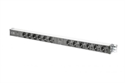 Con 12 prese schuko 16 A e 1 spina schuko 16 A. 250 VAC 50/60 Hz con protezione contro i sovraccarichi. Staffe per fissaggio rack incluse. Lunghezza cavo 2 metri. La presa multipla si installa in verticale nell'armadio rack.