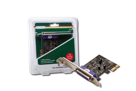 Scheda aggiuntiva Digitus PCI Express con 1 porta aggiuntiva parallela, e la possibilità di essere montata sia su computer normali che PC a basso profilo grazie alle staffe low profile incluse.