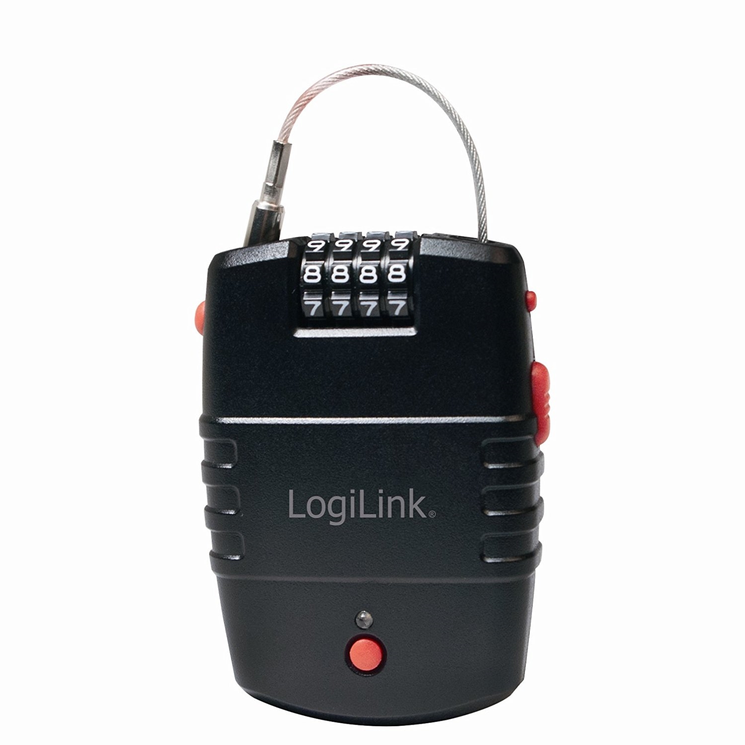 Lucchetto con allarme che si attiva quando si scossa il lucchetto o si tenta di tagliare il cavo.