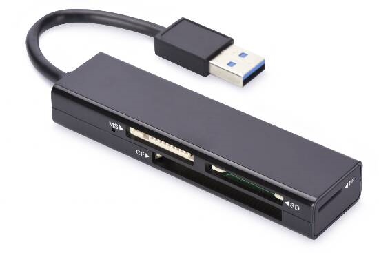 Il lettore ednet USB 3.0 Multi Card Reader legge e scrive i dati con una velocità SuperSpeed fino a 10 volte superiore rispetto a USB 2.0 e li trasferisce al notebook e PC.