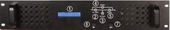 -Pannello frontale a LED e LCD (tensione/frequenza ingresso, tensione/percentuale livello batteria, tensione/frequenza uscita, misure W/VA carico, temperatura)