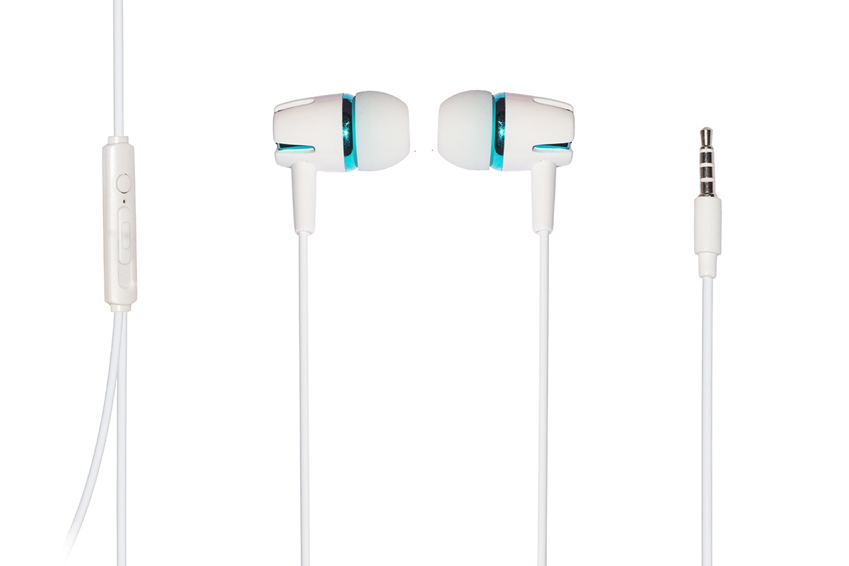 LINK - *AURICOLARI CON MICROFONO, PLUG 3,5 MM, CAVO MT 1,2 CAVO BIANCO E CUFFIE BIANCO-BLU