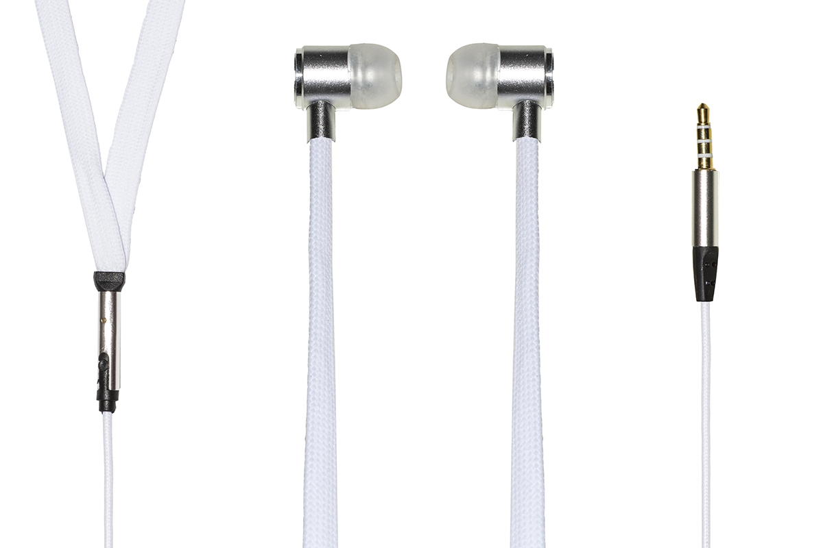 LINK - *AURICOLARI CON MICROFONO, PLUG 3,5 MM, CAVO MT 1,2 PIATTO CAVO IN TELA COLORE BIANCO, CUFFIE ARGENTO
