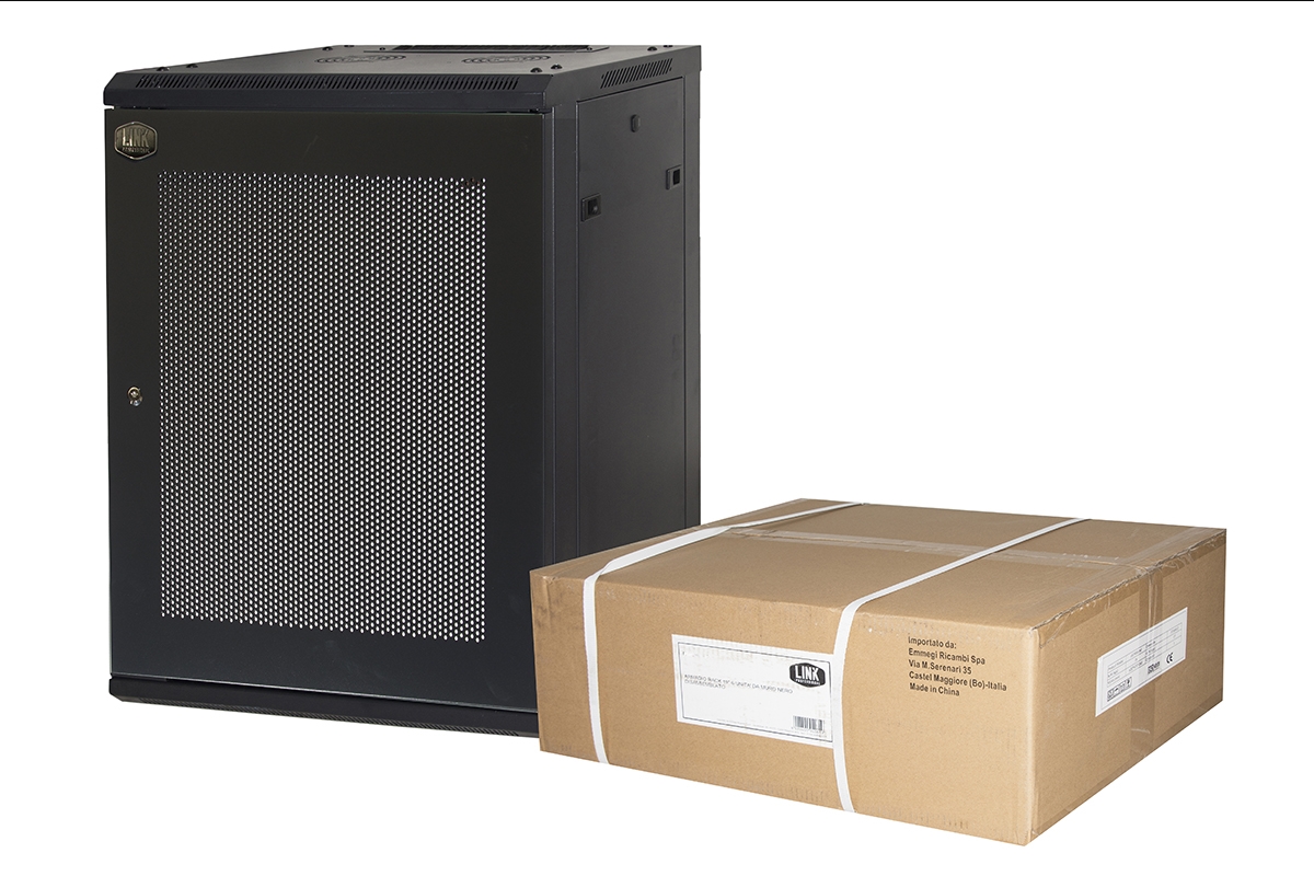 LINK - ARMADIO RACK 19" 12 UNITA' DA MURO (A) 635 x (L) 600 x (P) 450 NERO DISASSEMBLATO PORTA TRAFORATA