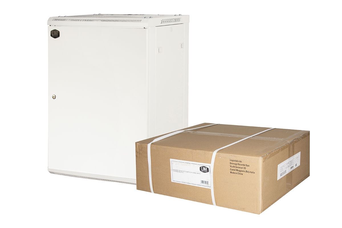 LINK - ARMADIO RACK 19" 15 UNITA' DA MURO (A) 770 x (L) 600 x (P) 450 GRIGIO DISASSEMBLATO PORTA METALLO CHIUSO
