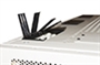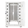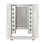 Possibilità di ingresso dei cavi di rete dall'alto dell'armadio o dal basamento. Il basamento è assente per consentire l’ingresso di grandi quantità di cavi. I cavi possono entrare dall’alto sia dalle entrate anteriori e posteriori, sia dagli sportellini richiudibili laterali.