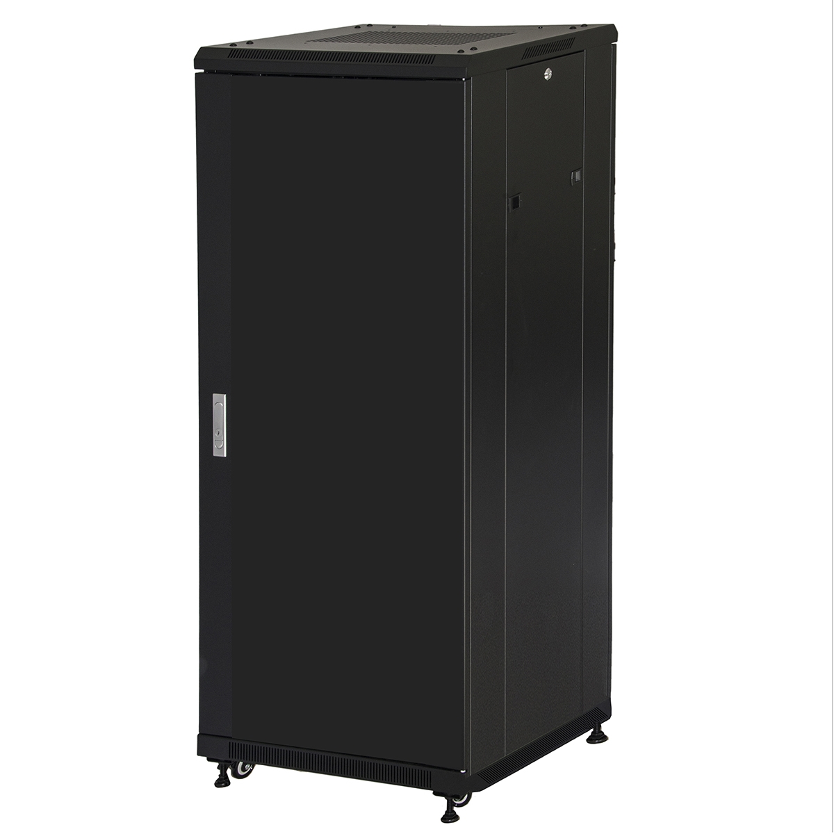 Porta frontale in metallo chiuso con chiusura a chiave con serratura a maniglia. Con questa porta si può ottenere la massima protezione e privacy dei dispositivi contenuti nell'armadio. La porta anteriore e quello posteriore sono reversibili, in modo da poter avere l'apertura a destra o a sinistra a seconda delle esigenze.