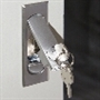 Porta frontale in vetro di sicurezza in struttura di acciaio con chiusura a chiave con serratura a maniglia. La porta anteriore e quello posteriore sono reversibili, in modo da poter avere l'apertura a destra o a sinistra a seconda delle esigenze.