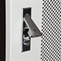 Porta frontale in metallo chiuso con chiusura a chiave con serratura.