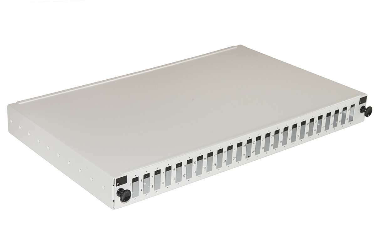 Box di giunzione per fibra ottica, occupa 1 unità nell’armadio rack.