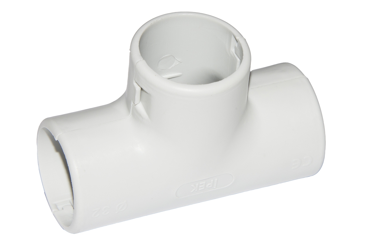 Giunto a T, si usa con la canalina LK80432 per unire 3 tratti di canalina lungo il muro, ha tre fori diametro mm. 32