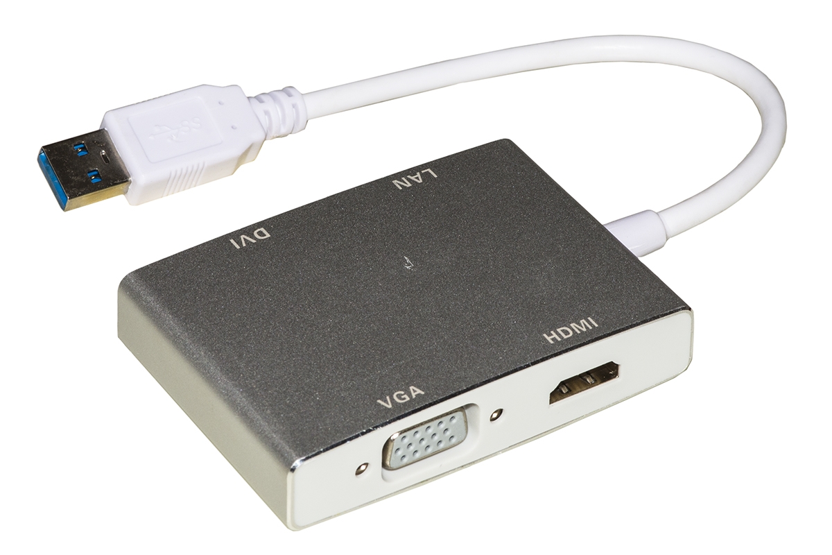 Con questo adattatore si può connettere, a una porta USB 3.0 tipo "A" di un PC o notebook, un video HDMI®, DVI, o VGA, e inoltre si può connettere il PC alla rete.