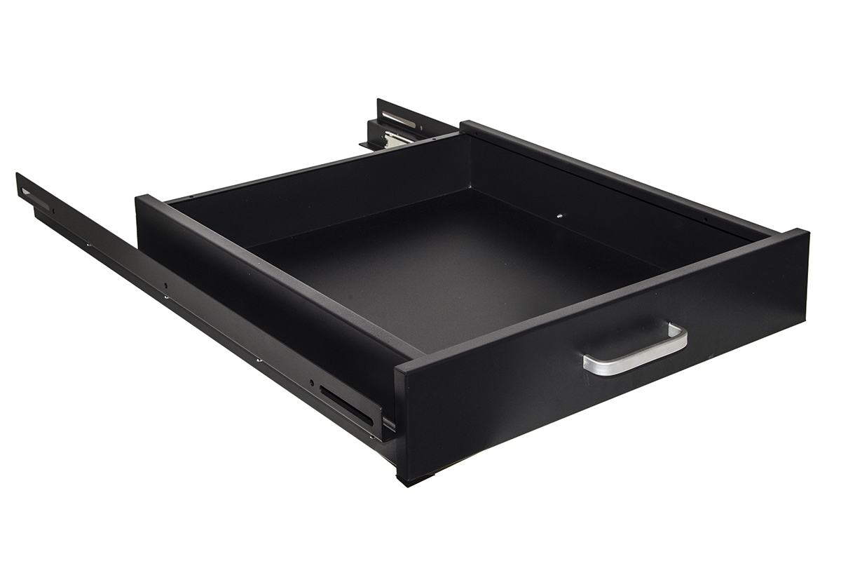 Cassetto estraibile, con maniglia, che si può usare per alloggiare dispositivi da tenere dentro gli armadi rack 19" della linea Link profondi 1000 mm.