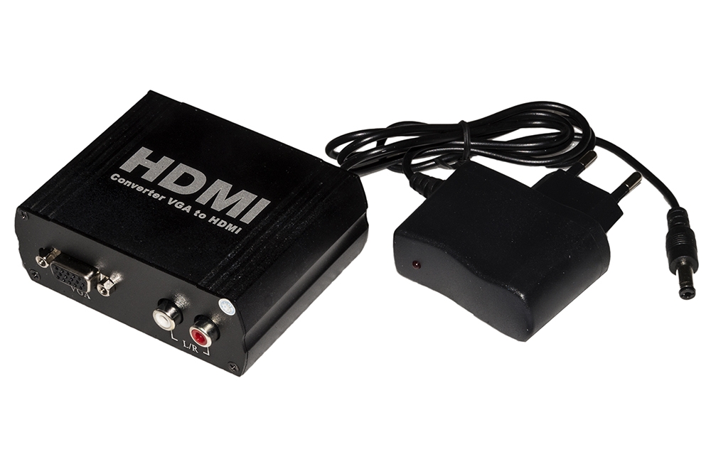 CONVERTITORE VGA+AUDIO RCA (R/L) A HDMI®Il convertitore permette la connessione di un dispositivo VGA con audio RCA a un monitor o proiettore HDMI.