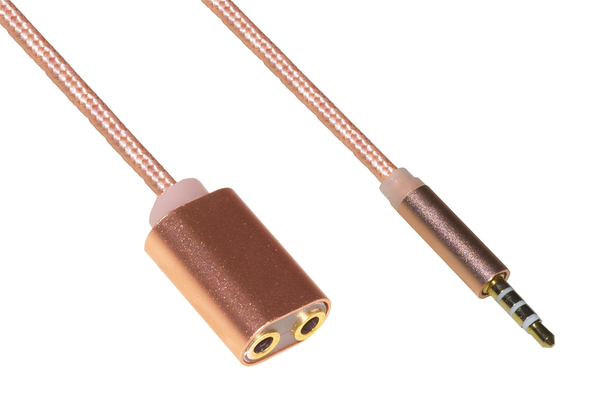 LINK - *SDOPPIATORE AUDIO JACK 3,5 MM MASCHIO A 2 FEMMINE 35 CM GUAINA INTRECCIATA COLORE ROSA