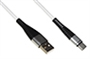 Con guaina intrecciata particolarmente resistente, e connettori con protezione antistrappo. In questo modo quando si tira il cavo per scollegarlo si può farlo tramite il copriconnettore, minimizzando il rischio di rottura dopo ripetute operazioni di scollegamento.