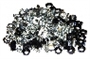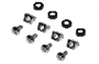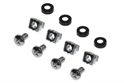 Confezione da 50 viti, rondelle di plastica e dadi a gabbia apposite per fissare i normali dispositivi 19" ai montanti laterali degli armadi rack.
