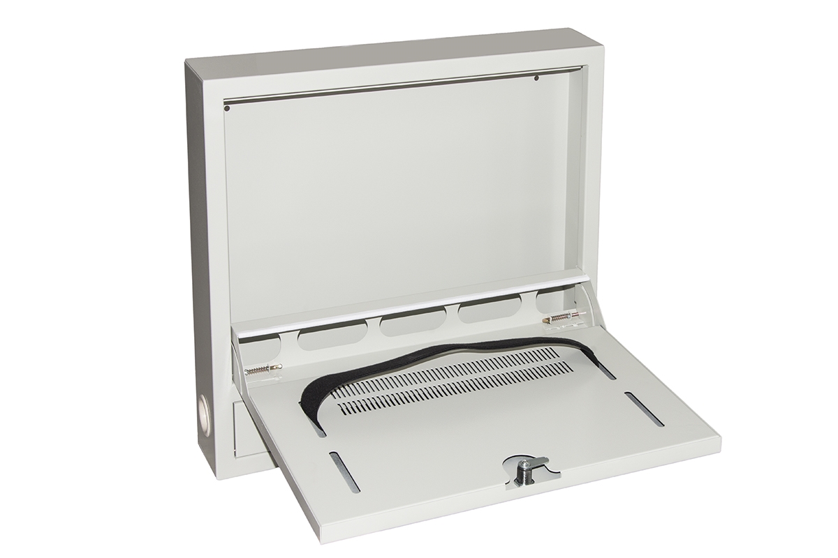 Armadio a muro per alloggiare un notebook, in metallo con chiusura a chiave.