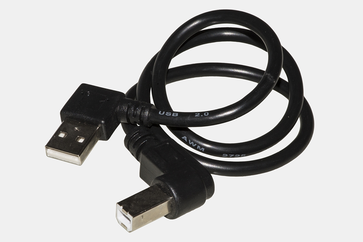 Cavo USB 2.0 coi due connettori angolati a 90°.