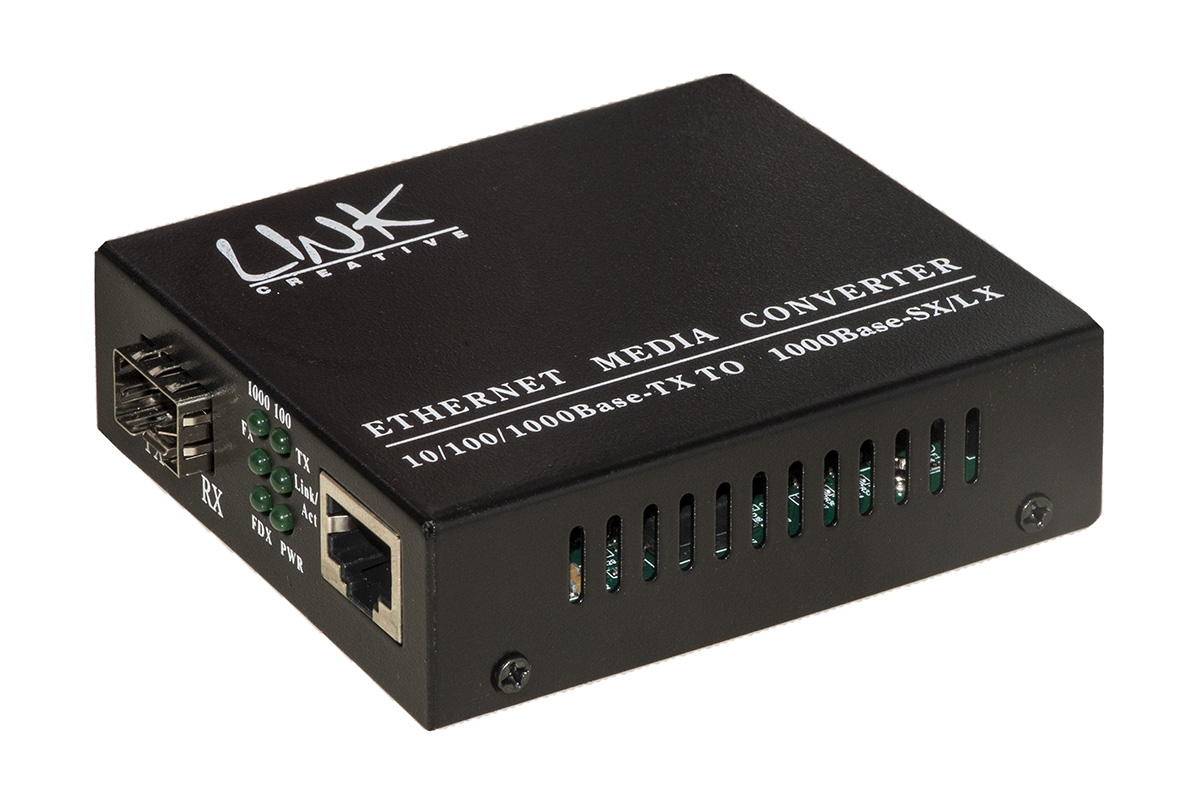 Converte un segnale di rete su cavo RJ45 8 poli 10/100/1000 Base-TX in un segnale a fibra ottica 1000 Base-SX/LX permettendo così di estendere di molto un segnale di rete che normalmente arriva fino a 90 metri. Lo slot SFP permette l’inserimento di un modulo SFP.