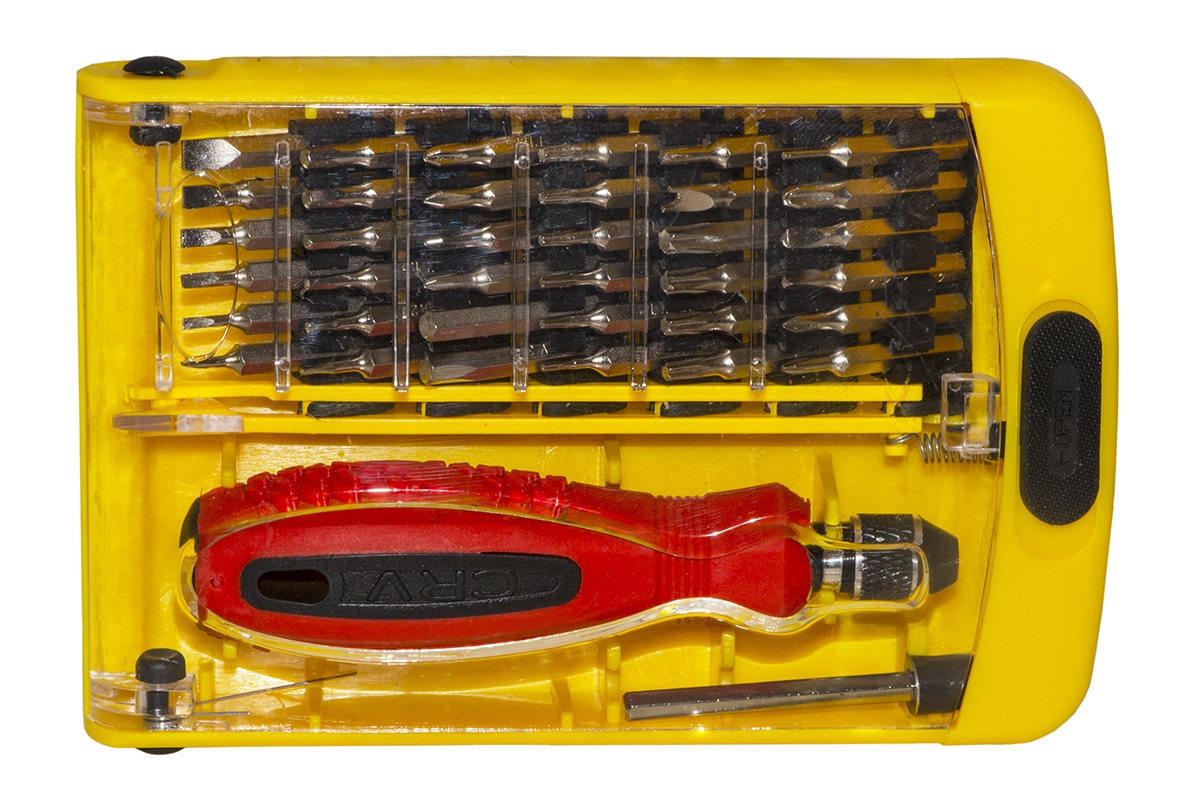 Il cacciavite ha 38 punte anche formato micro per piccoli dispositivi elettronici, occhiali, telefoni.