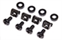 Base in acciaio e 9 fori passaggio cavi tramite ganci in plastica.