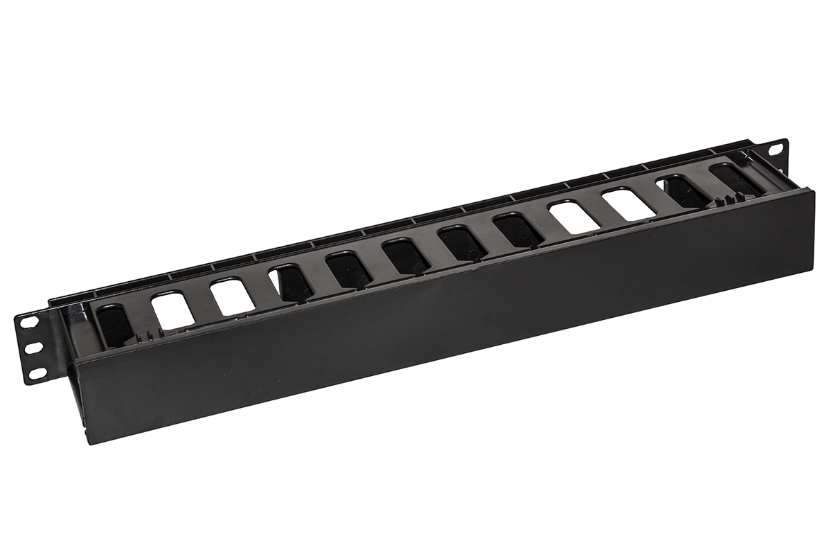 Guidacavi colore nero per installazione orizzontale sui montanti degli armadi rack 19".