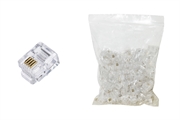 Confezione 100 Connettori telefonici 6 posizioni 4 contatti, tipicamente in uso nei cavi telefonici.