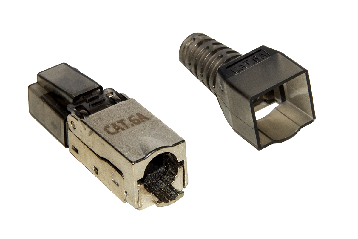 Connettori schermati 8 poli categoria 6A per reti che non hanno bisogno dell'apposita pinza per essere crimpati.