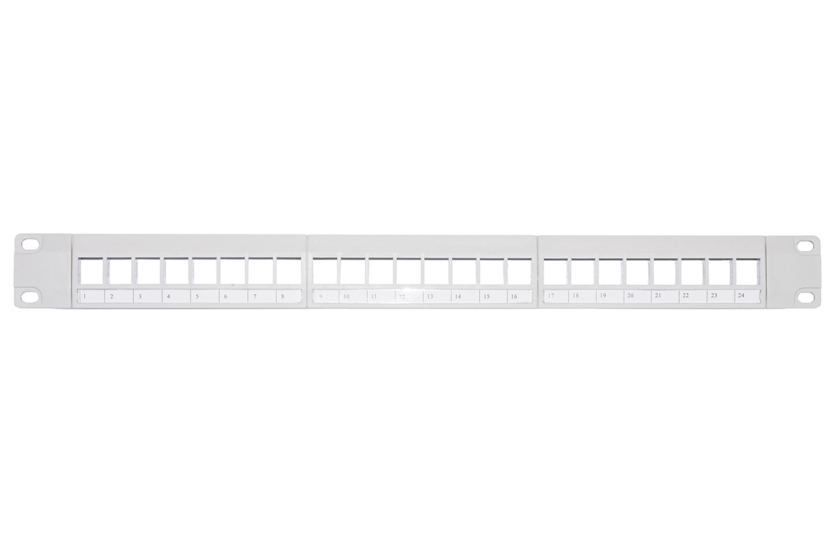 Pannello vuoto per montaggio 19" moduli jack per reti (moduli non inclusi).